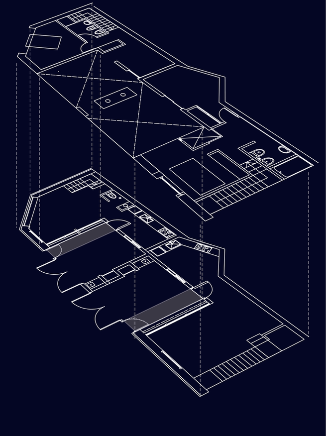La remodelación fue un acto optimista por el cual viejas organizaciones dejan lugar a nuevas interpretaciones atendiendo los cambios en las formas de habitar. El desafio del proyecto fue transformar una organización horizontal en dos verticales destinando parte de la superficie para generar un pulmón compartido por dos unidades de vivienda. as condiciones locales, tipológicas y constructivas propias de campana que tiene una estética fabril y portuaria muy presente. Por tal motivo la decisión fue rescatar los ladrillos comunes de la demolición para ser reutilizados en la nueva fachada que es la resultante de la sustracción generada. En el perímetro antiguo no se alteraron vanos ni rejas, solo se cambiaron carpinterías que debido al espesor de los muros quedan casi escondidas. Las líneas de acción que tuvieron que ver con las sustracción, demolición, apuntalamientos y desplazamientos de pocos tabiques; dotan al lugar de cualidades contemporáneas como lo son las indeterminación y adaptabilidad en una superficie minima. De esta forma pudo ser una constante la premisa de otorgar algún tipo de valor a lo existente y a la vez generar estas dos nuevas unidades.