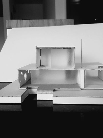 Esta casa en etapa de proceso plantea a partir de una placa la implementación de patios internos y a la vez un eje que funciona como circulación para dividir los programas públicos conformando dos grupos de dormitorios. Un área contiene la suite principal y el otro sector los dos dormitorios secundarios. El corredor central atraviesa distintas situaciones que tamizan la luz, lo abierto y lo cerrado hasta llegar al comedor. El desafío más grande en este punto y con esta organización fue optimizar cada uno de los lugares para no excedernos de los 200 m2 que fue el límite del requerimiento.